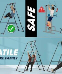 * [Amazing Workout Experience] Rising above competitors, the KT Folding Pullup Dip Stand accommodates both basic and advanced exercises, including muscle-ups and kipping pull-ups. Engineered for quad-directional stability and boasting a superior 771.6 lbs capacity, it ensures safe, effective, and comfortable workouts. Its remarkable 101.57” max height and enhanced sturdiness eliminate 94% of wobble, providing an unparalleled high-quality pull-up/chin-up experience with full-body stretching